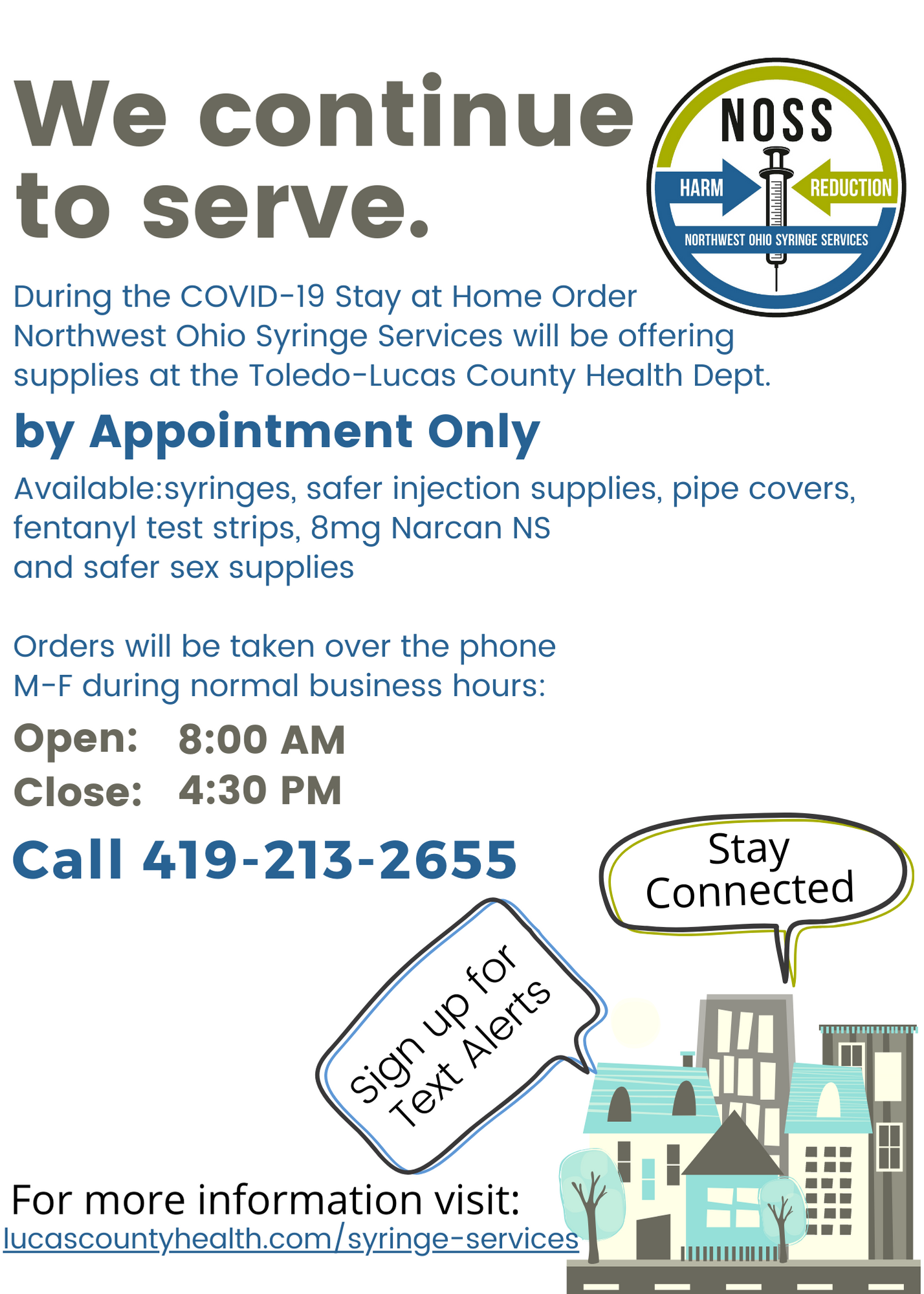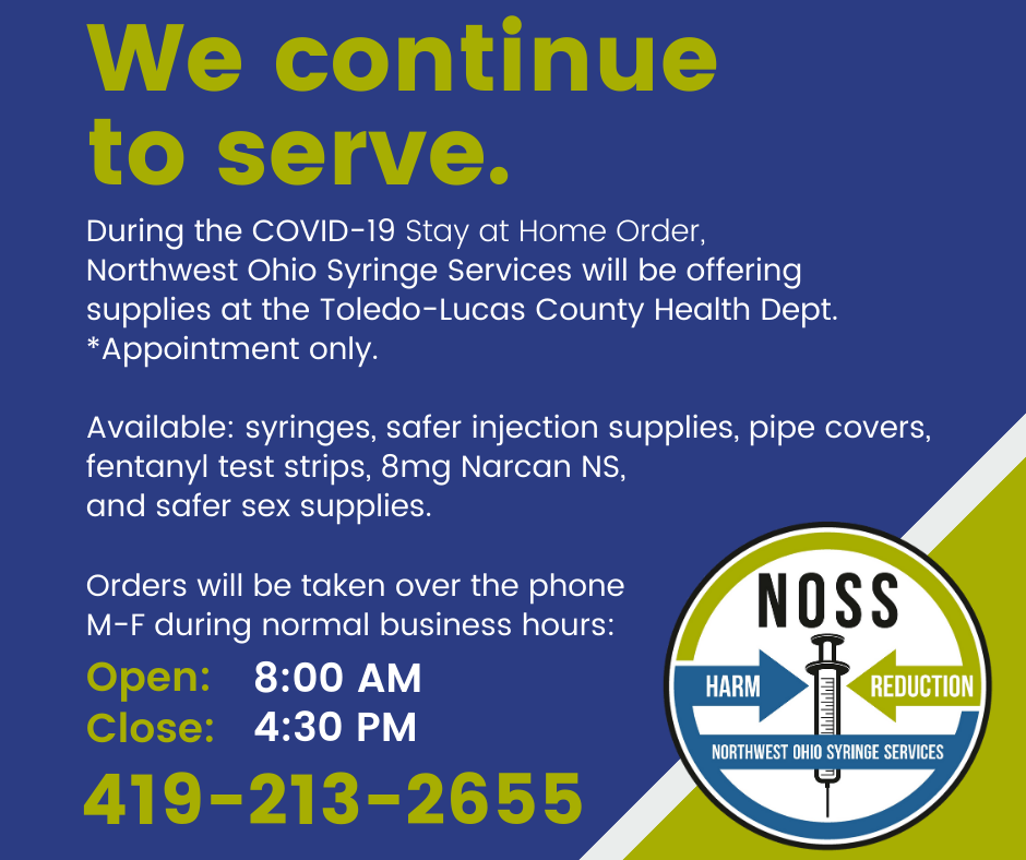 Northwest Ohio Syringe Services is a blood borne pathogens prevention program as required by the Ohio Revised Code #3707.57 and is supported by the Ryan White Program of the University of Toledo Medical Center and by the Lucas County Mental Health and Recovery Services Board.